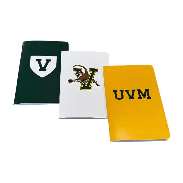 From Roaring Spring Paper Products, this 3-pack of stapled mini notebooks features three distinct UVM cover designs.