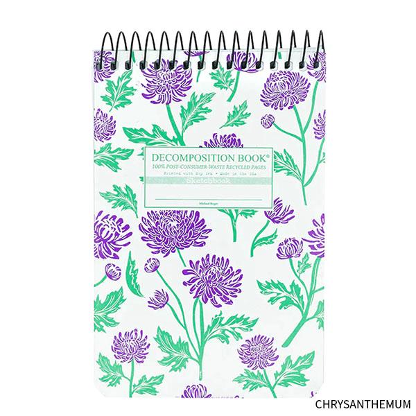 The Decomposition Book is a twist on the classic composition book made from 100% post-consumer-waste recycled paper and clever cover designs printed with soy ink. This style features a top spiral binding and lined paper. Measures 6 1/4" x 4"