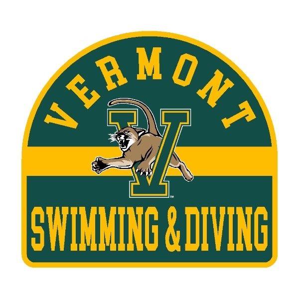 Durable vinyl sticker from Color Shock has a textured surface for a non-slip grip and features a full color UV print with "Vermont" and the V/Cat logo over "Swimming & Diving" Perfect for water bottles and devices, sticker removes without residue. Made in the USA.